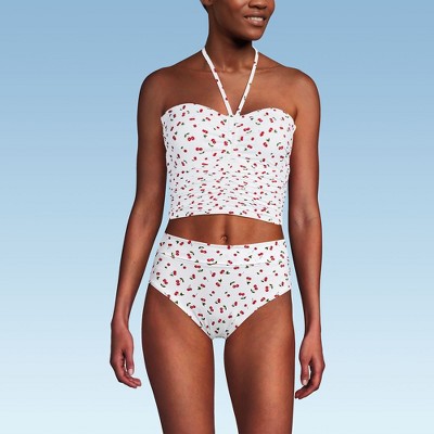 Lands' End Women's D-Cup SlenderSuit U-Wire Bandeau Tankini Top - 10 - Daylily Red Multi Floral