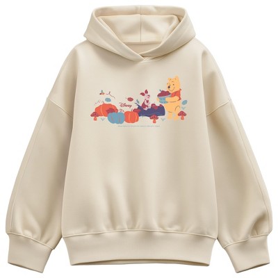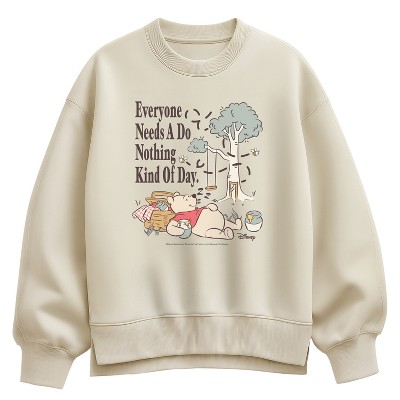 Women's Winnie The Pooh Fall Oversized Fleece Crew Sweatshirt - Cream - Small