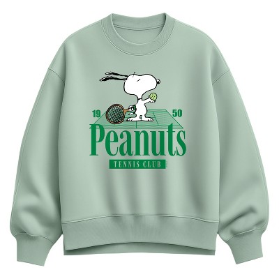 Women's - Peanuts - Tennis Club Oversized Fleece Crew Sweatshirt