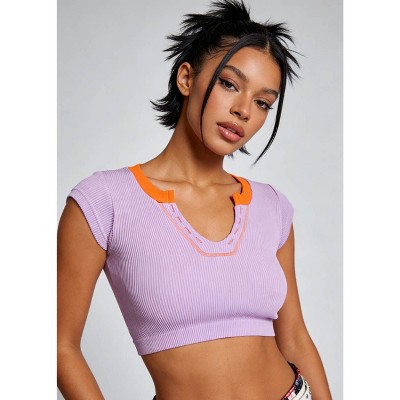Cherie Code Women's Ribbed V-Neck Crop Top – Short Sleeve, Stretch Knit Tee