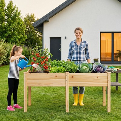 72" x 26" Wooden Raised Garden Bed with Legs, Elevated Reinforced Planter Box for Backyard, Balcony, Vegetables, Herbs, Gardener w/Divider Panel