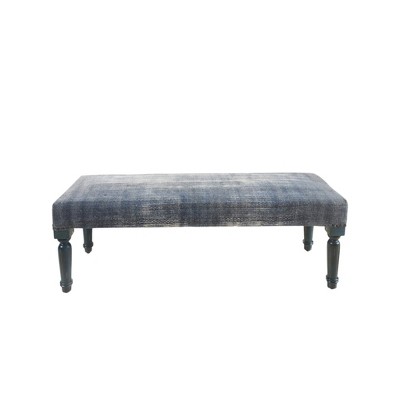 HomeRoots 47" Blue And Cream Abstract Design Blue Leg Upholstered Bench