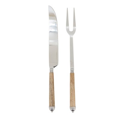 Saro Lifestyle Mango Wood Handle Carving Knife & Meat Fork Set – Stainless Steel Serving Tools for Roasts, Turkey, and Holiday Entertaining, Off-White