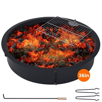 Steel Fire Pit Ring with Grill – Heat-Resistant Outdoor Firepit Insert – for Patio, Backyard, Bonfire – Fit Above or In-Ground – Black, 36"x36"x7.8"H