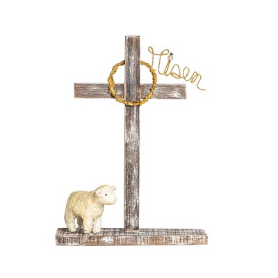Transpac Wood Risen Cross with Lamb Easter Home Decoration Decorative Object for Spring Celebrations