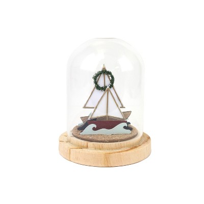 Beachcombers WOOD with GLASS DOME SAILBOAT with WREATH