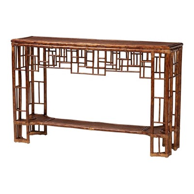 bali & pari Tahlia Marbled Tortoise Natural Rattan Console Table Marbled Tortoise Brown