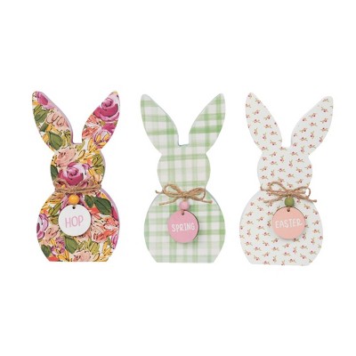 Transpac Wood 5.94 Inch Multicolor Easter HOP Shaped Bunny Decor Set of 3 Decorative Objects for Easter
