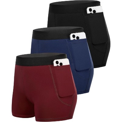 Womens Running Workout Yoga Leggings with Pockets and Elastic Cuff, Up to 2XL, Pack of 3