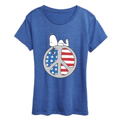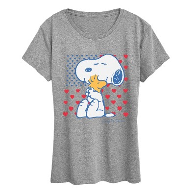 Women's - Peanuts - Snoopy Americana Heart Flag Short Sleeve Graphic T-Shirt