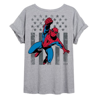 Women's - Marvel - Spider-man USA Flag Oversized Graphic T-Shirt
