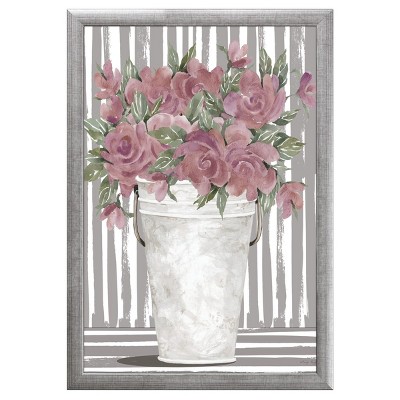 12" x 16" Pink Posies II Framed Wall Art, Contemporary Nature Home Décor, Glass Facing and Hanging Hardware Included