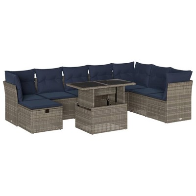 vidaXL 9 Piece Patio Sofa Set with Cushions Poly Rattan