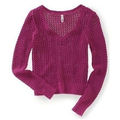 Aeropostale Womens Solid Cable V Neck Knit Sweater