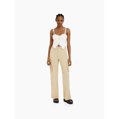 Women High Waist Cargo Pants Side Pockets Straight Leg Regular Fit Casual Long Pants