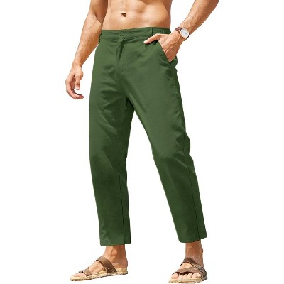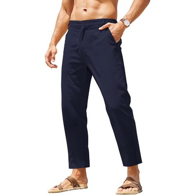 COOFANDY Men's Linen Casual Lightweight Pants Elastic Waist Drawstring Beach Pants with Pockets