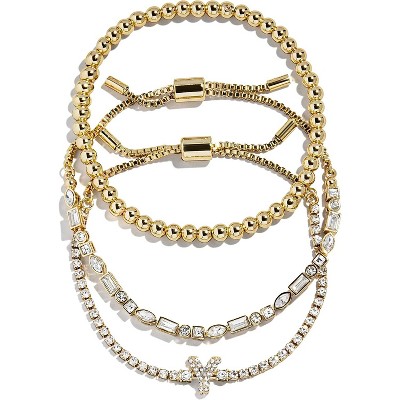 3-Piece Gold Plated Initial Bead Bracelet Set, Personalized Trendy Jewelry Gift for Women