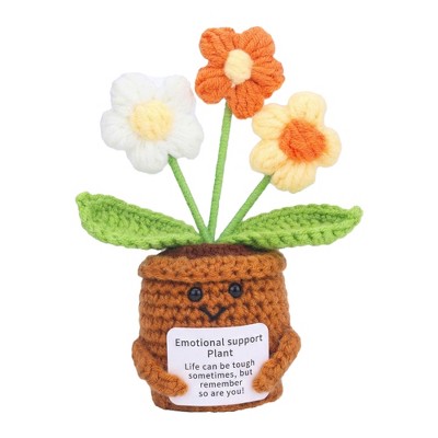 REGALWOVEN Knitted Potted Plant for Desk Decor, Cute Aesthetic Fake Flower
