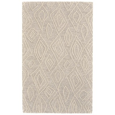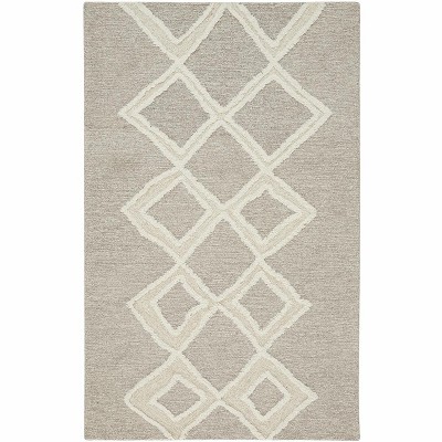 Ivory Tan And Silver Wool Geometric Tufted Handmade Stain Resistant Area Rug
