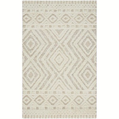 Ivory And Tan Wool Geometric Tufted Handmade Stain Resistant Area Rug