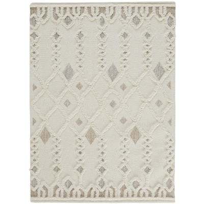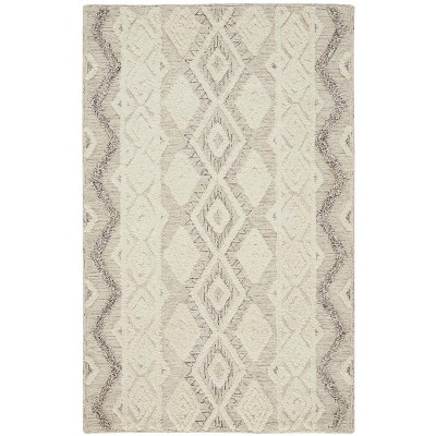 Ivory Taupe And Gray Wool Geometric Tufted Handmade Stain Resistant Area Rug