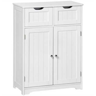 Modern White Storage Cabinet, MDF Floor Cabinet with 2 Drawers 3 Adjustable Shelves