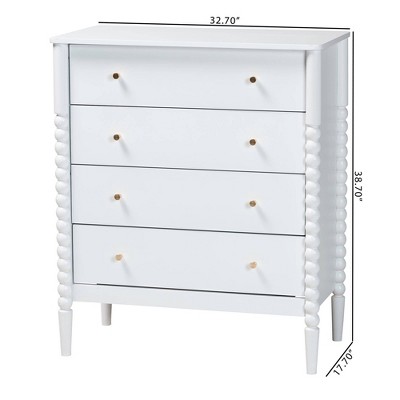 Baxton Studio Lucera Mid Century Bobbin Wood 4 Drawer Chest White