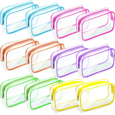 Narwey 12 Pieces Clear Makeup Bags Cosmetic Storage Bags PVC Zipper Pouches Travel Waterproof Makeup Plastic Case (Large,Bright Color)