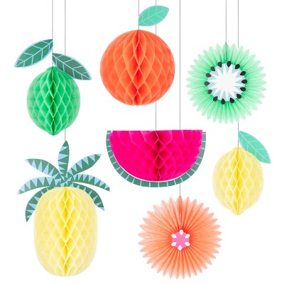 Meri Meri Tropical Fruit Honeycomb Decorations (Pack of 7)
