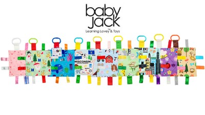 Baby Jack and Company is a small, family business from Wisconsin designing educational tag toys with sensory appeal, helping with development of babies. The ONLY brand with sewn shut ribbons to keep fingers from getting stuck in loops. Fun fabrics designed by kids, for kids that can grow with each child.